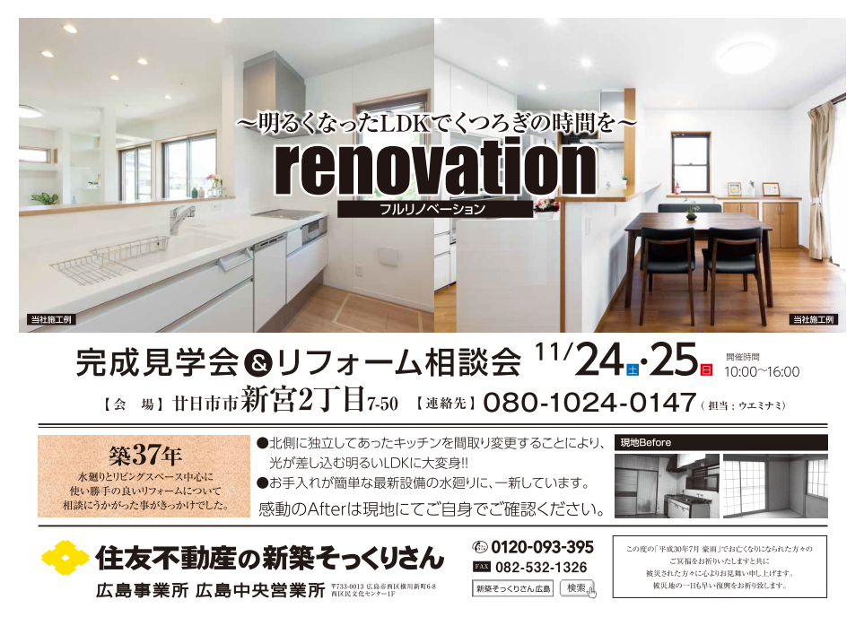 完成見学会&リフォーム相談会 in 廿日市市新宮 11/24,25