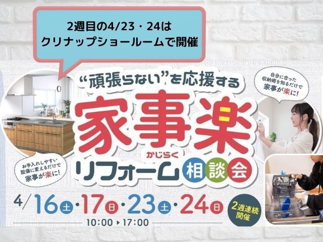 【予約制】“頑張らない”を応援する家事楽リフォーム相談会4/23〜24