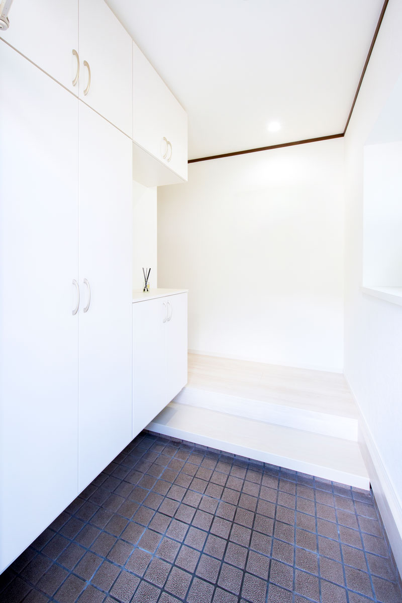 - D:カウンタータイプのシューズクローゼットのみで、既製品の下駄箱を置いて収納を補っており、玄関が狭くなっていました。