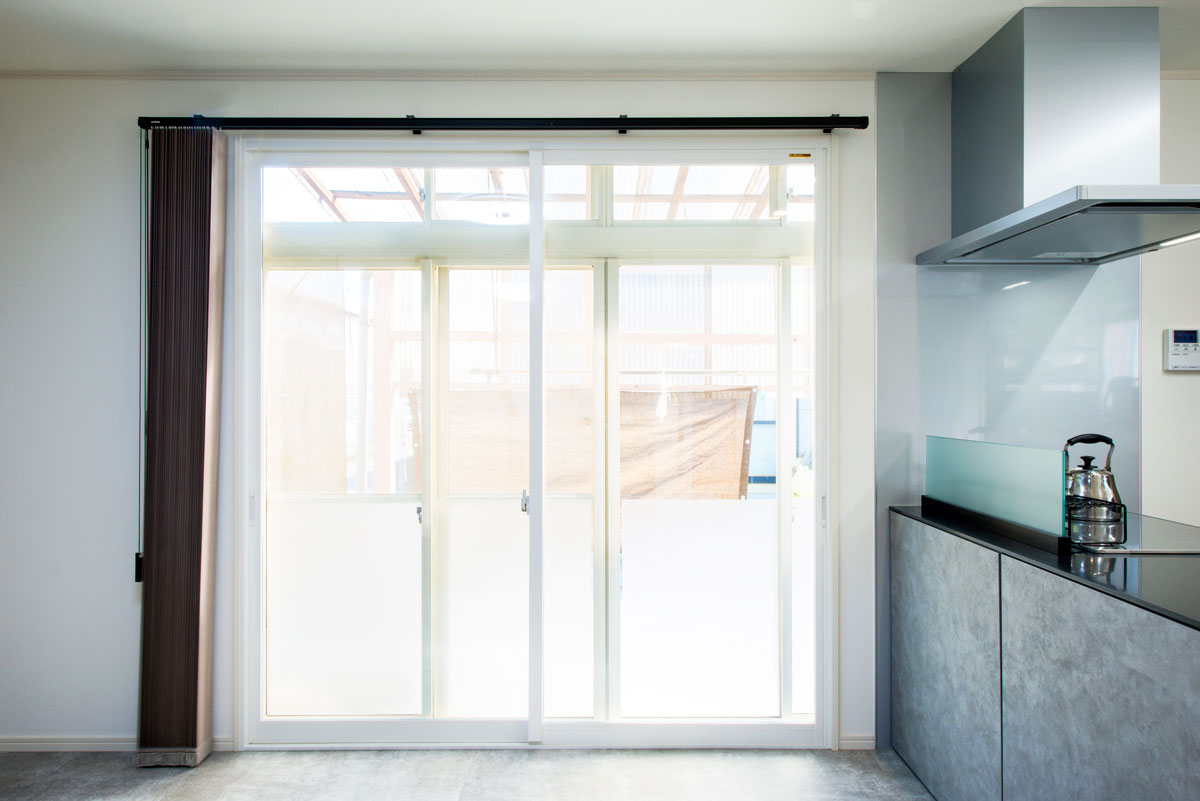 さらに補助金を使えるリフォーム用断熱サッシの活用で、コストを抑えつつ既存窓をサイズダウン。対面キッチンが張り出す掃き出し窓と、テレビ背面壁の出窓を、新規壁の造作と縮小した内窓ですっきり仕上げました。