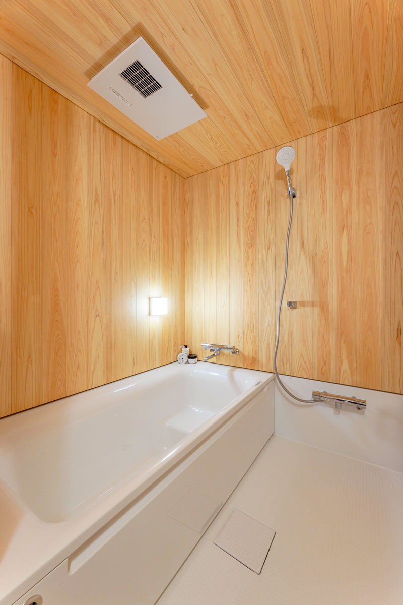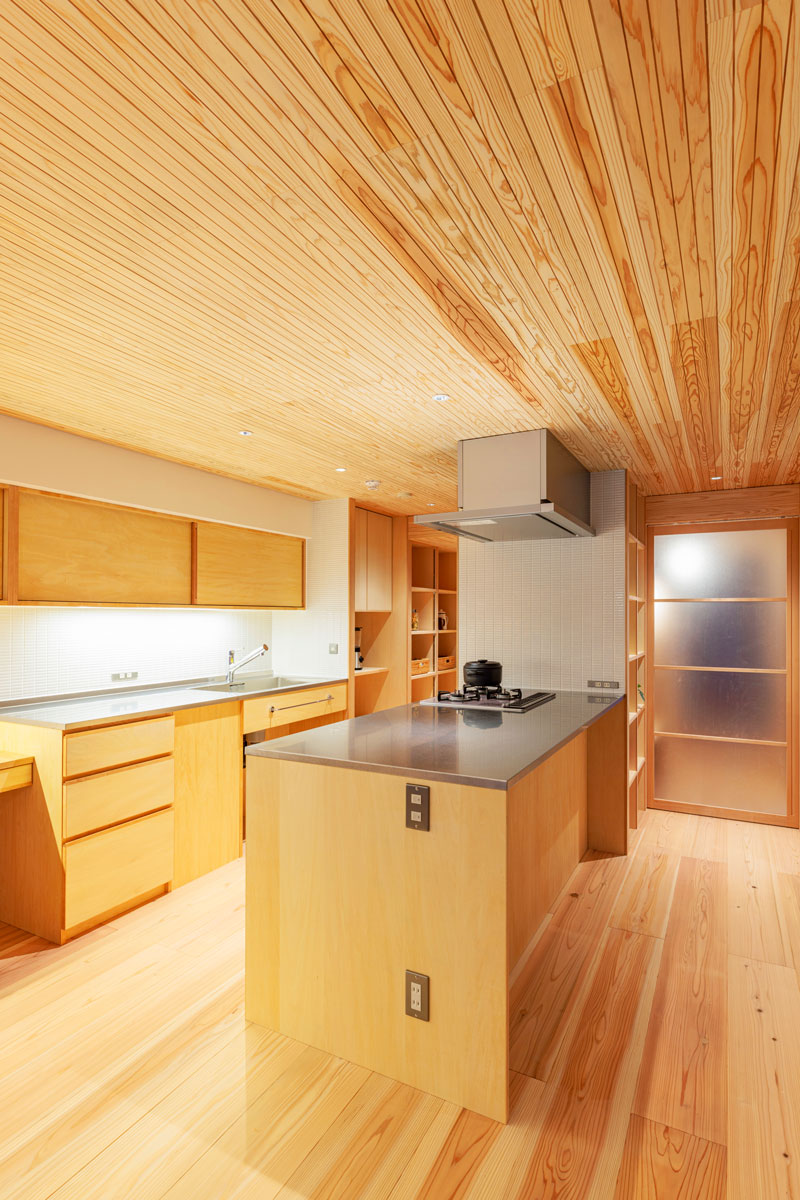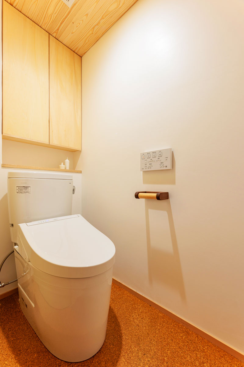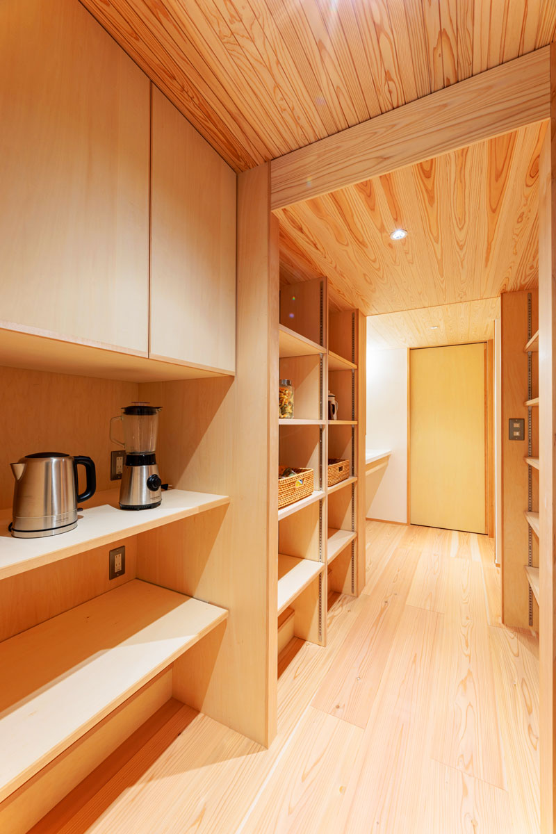 コンセプトは、「大工さんがつくる自然素材の家」。杉、ヒノキ、ツガなど木材をふんだんに用いて建具や収納家具をすべて造作し、壁は漆喰に。床下ボードや断熱材にも自然素材を採用して、心地よい空間に仕上げました。