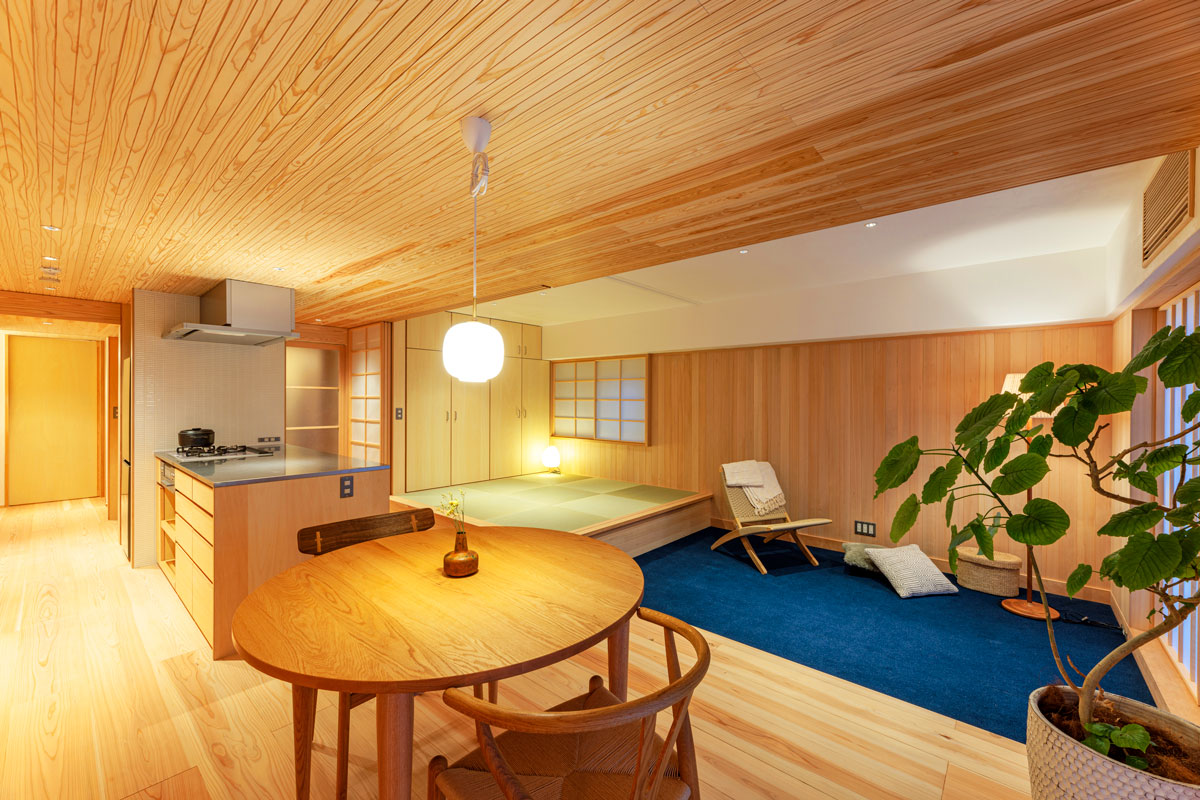 古いマンションの中に、自然素材の平屋を建てるイメージで、床下から天井まで丸ごと大胆に一新しました。