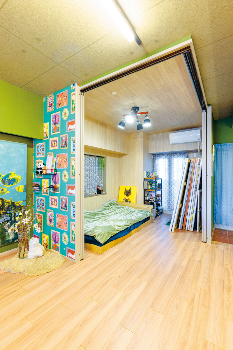 希望したのは、広いLDKが主役のワンルームのような空間にして、収納は1か所にまとめること。そして、100号の絵を3枚並べられる大きな壁を設けることでした。
