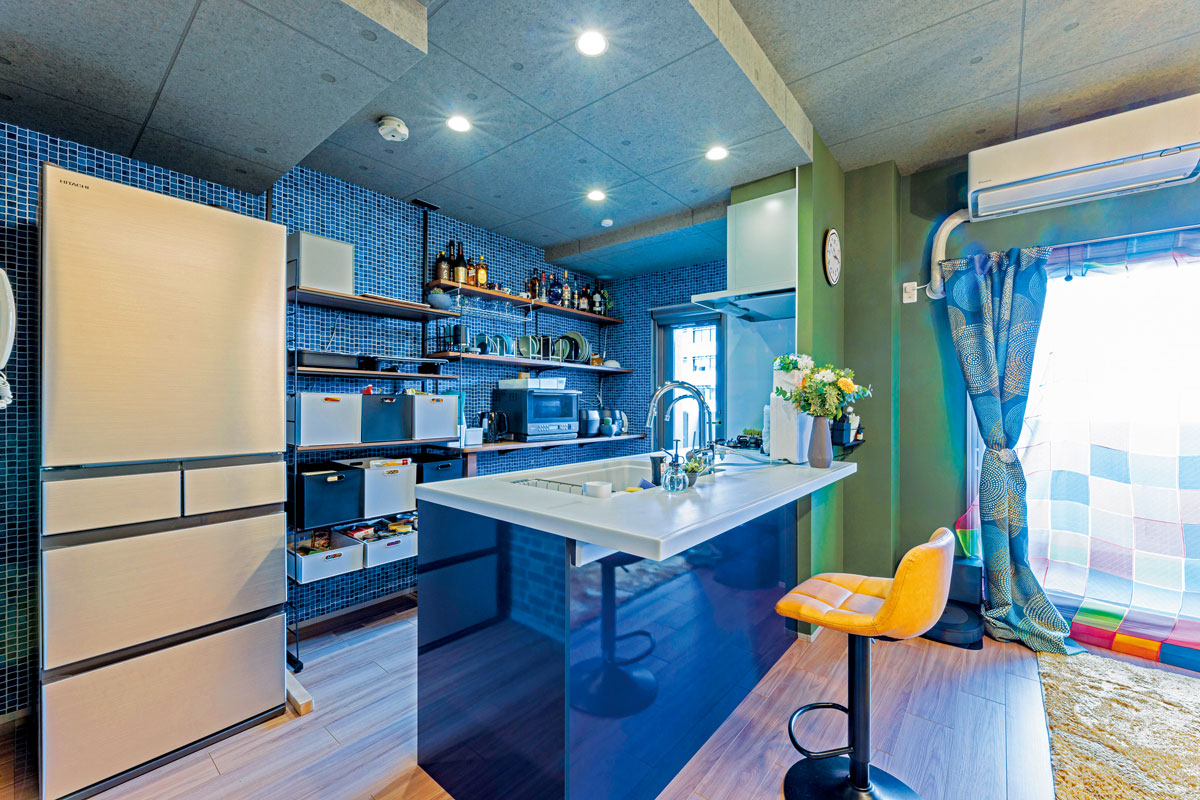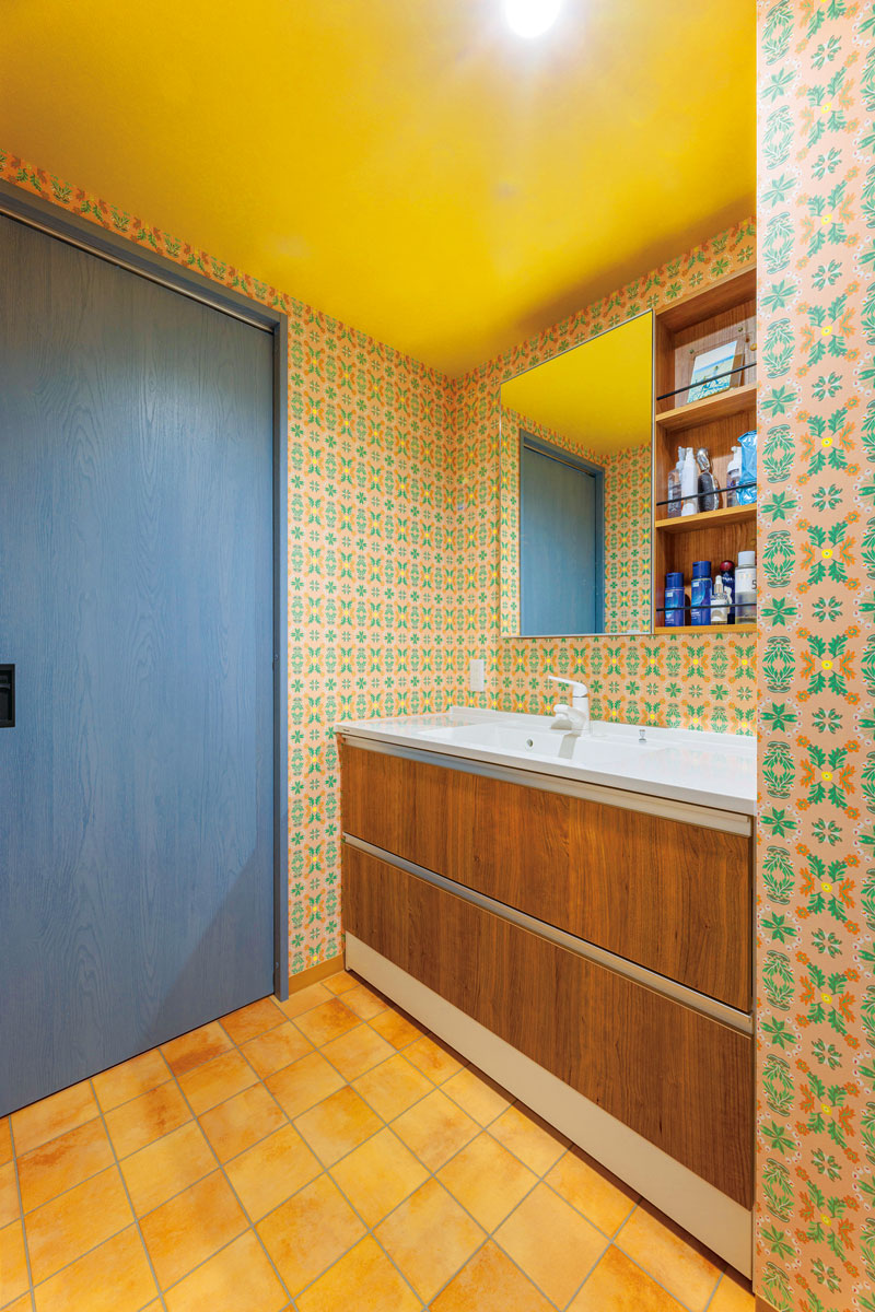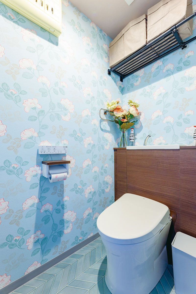 独創的なクロス使いはTさま自身のセレクト。ハートフルハウスから3社分のカタログを取り寄せて厳選し、柄や色の異なるクロスを大胆に組み合わせたセンスが光る唯一無二の空間に。「好きな色と物に囲まれた理想の住まいにできて、とても満足しています」
