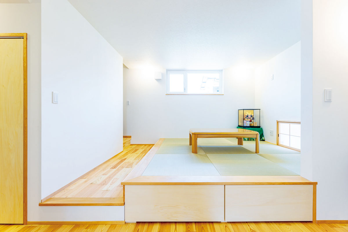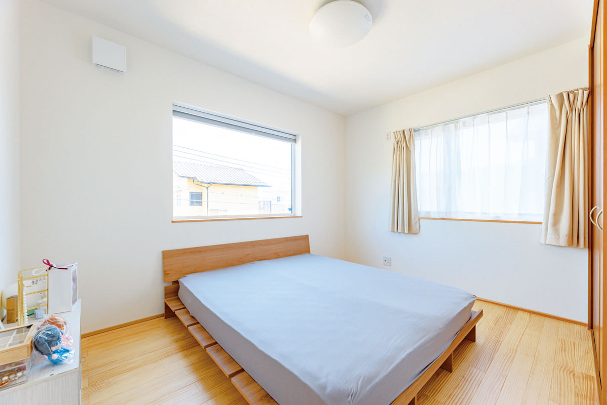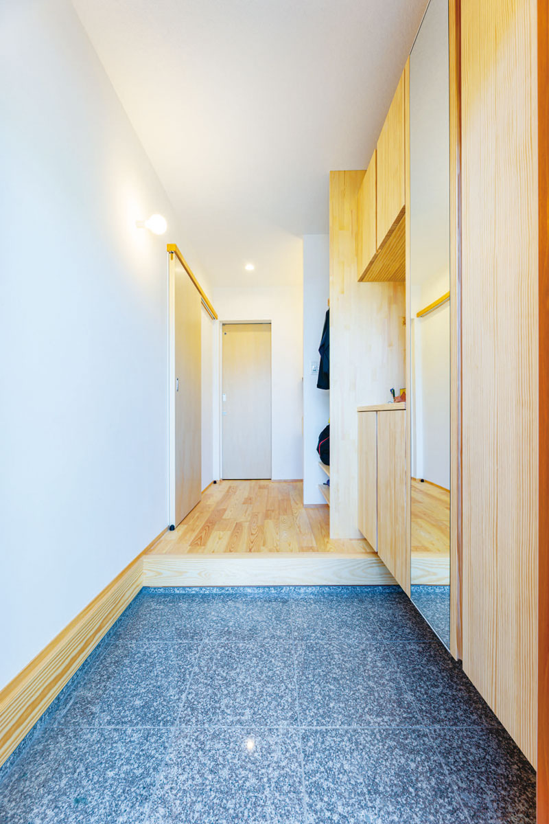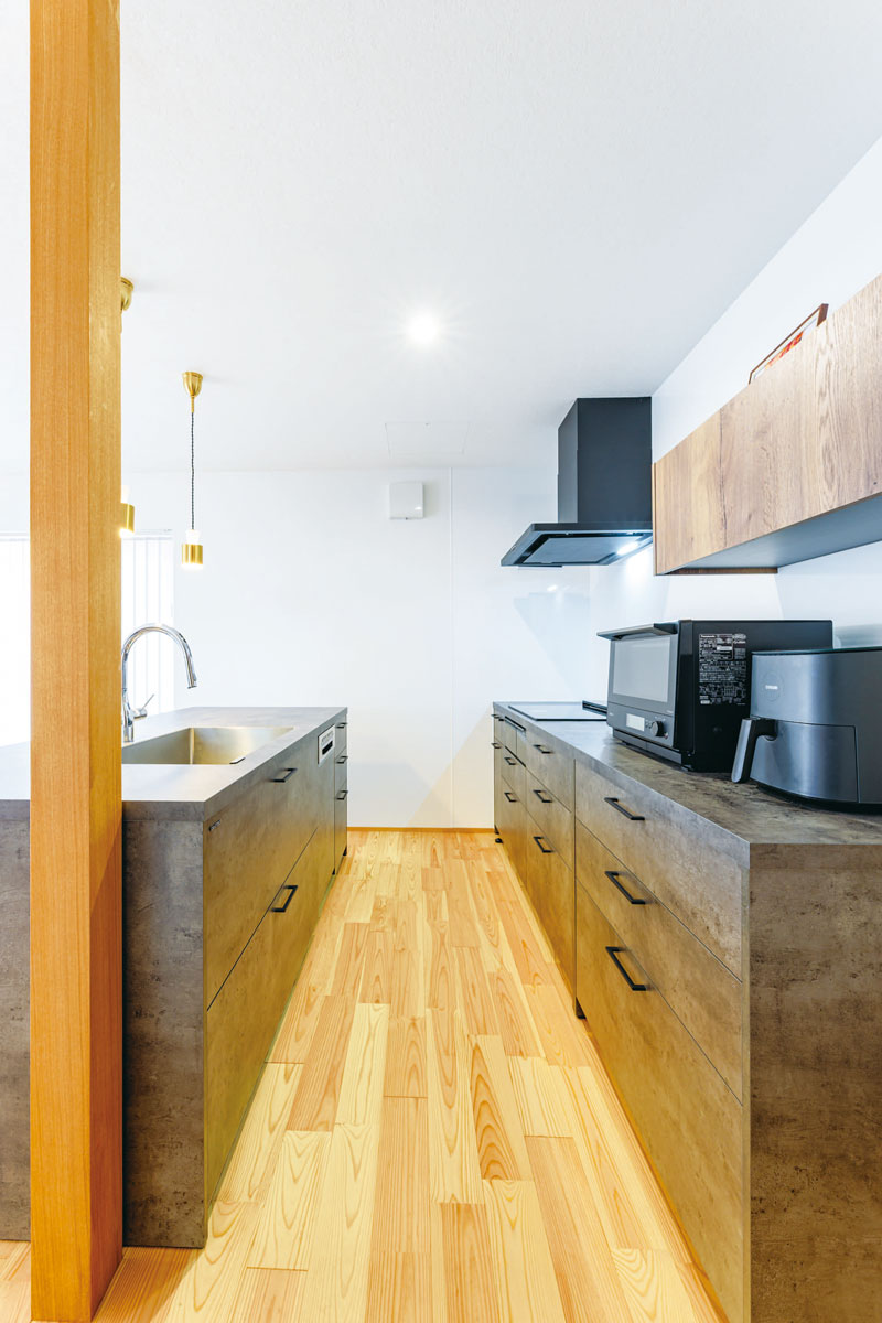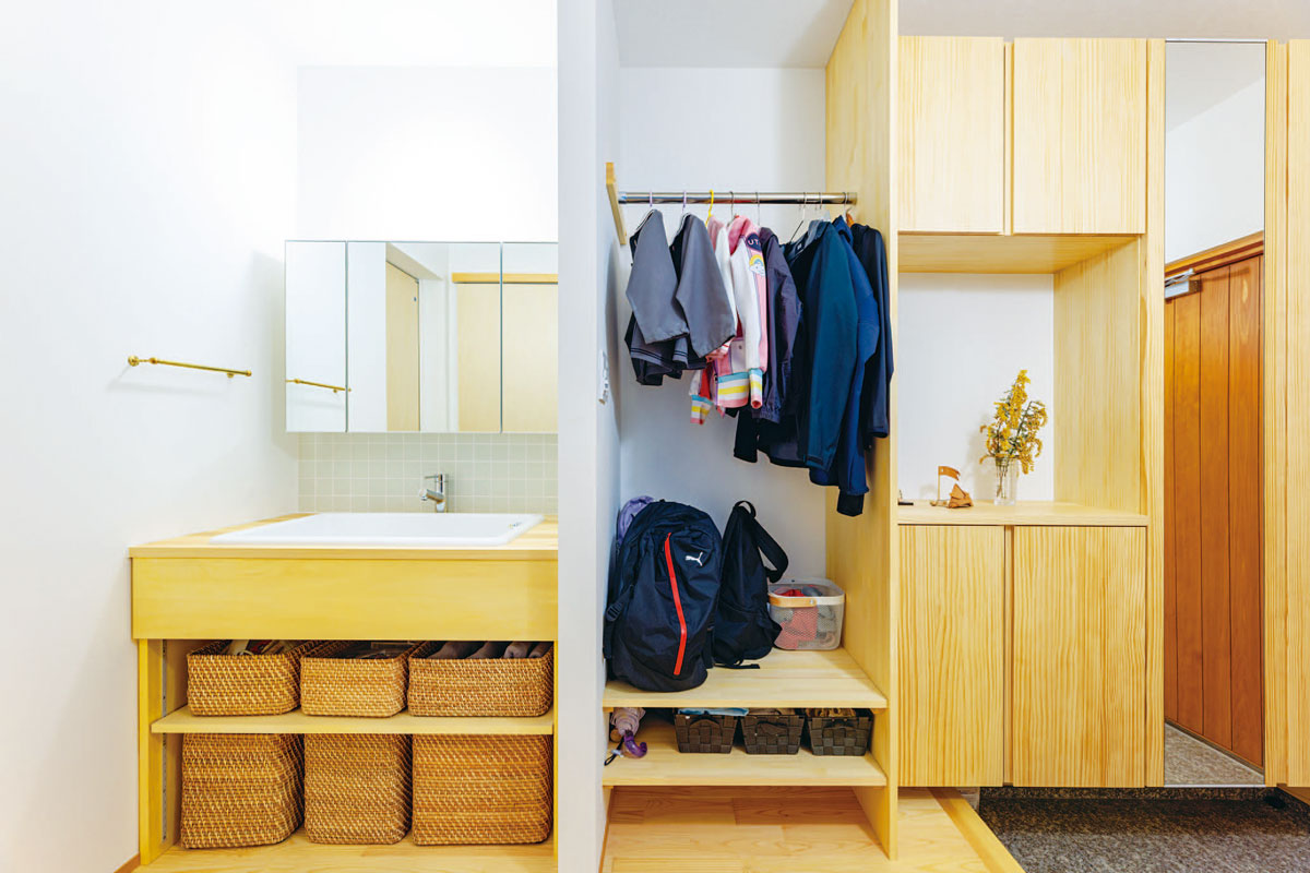 室内は、自然素材の漆喰や無垢材を用いて心地よい空間に。帰宅したお子さんたちの顔が見えるリビング階段に変え、1階は回遊性のある暮らしやすい間取りに大きく変更。新築よりもコストを節約できたことで、設備や内装材の質には納得がいくまでこだわり、理想の家を実現されました。