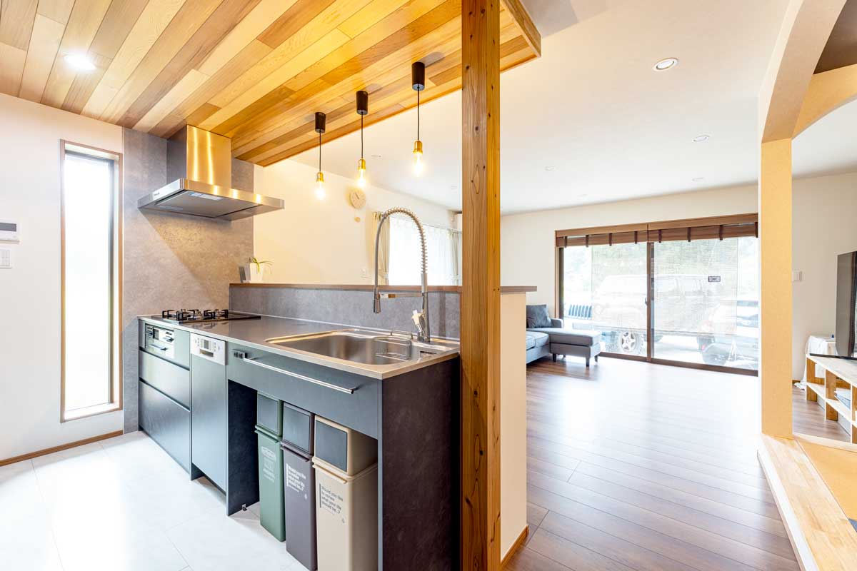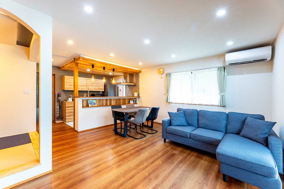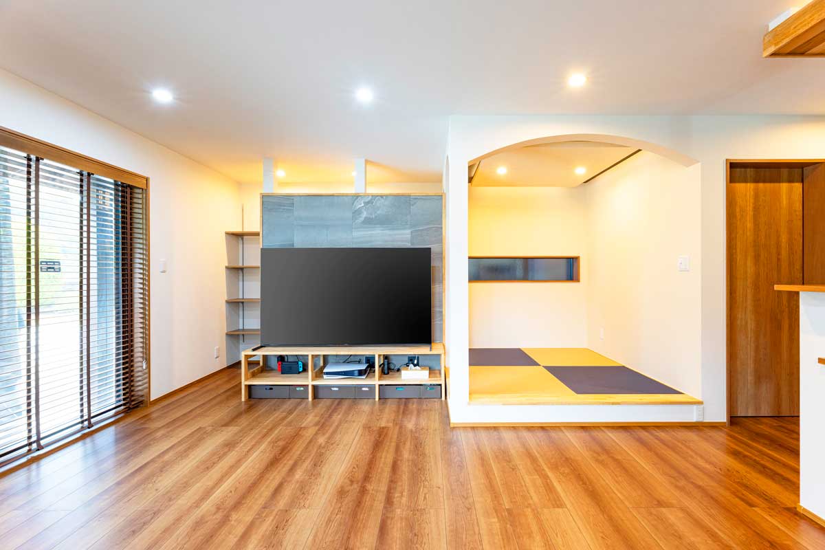 ガレージをLDKとして活用することは決まっていたので、打ち合わせで何度も話し合ったのは家の仕様部分。LDKに小上がりの和室を設けたり、自分たちのこだわりを形にできるオーダーキッチンや造作を取り入れたり、できることとできないことを相談しながら細部の仕様を決めていきました。
