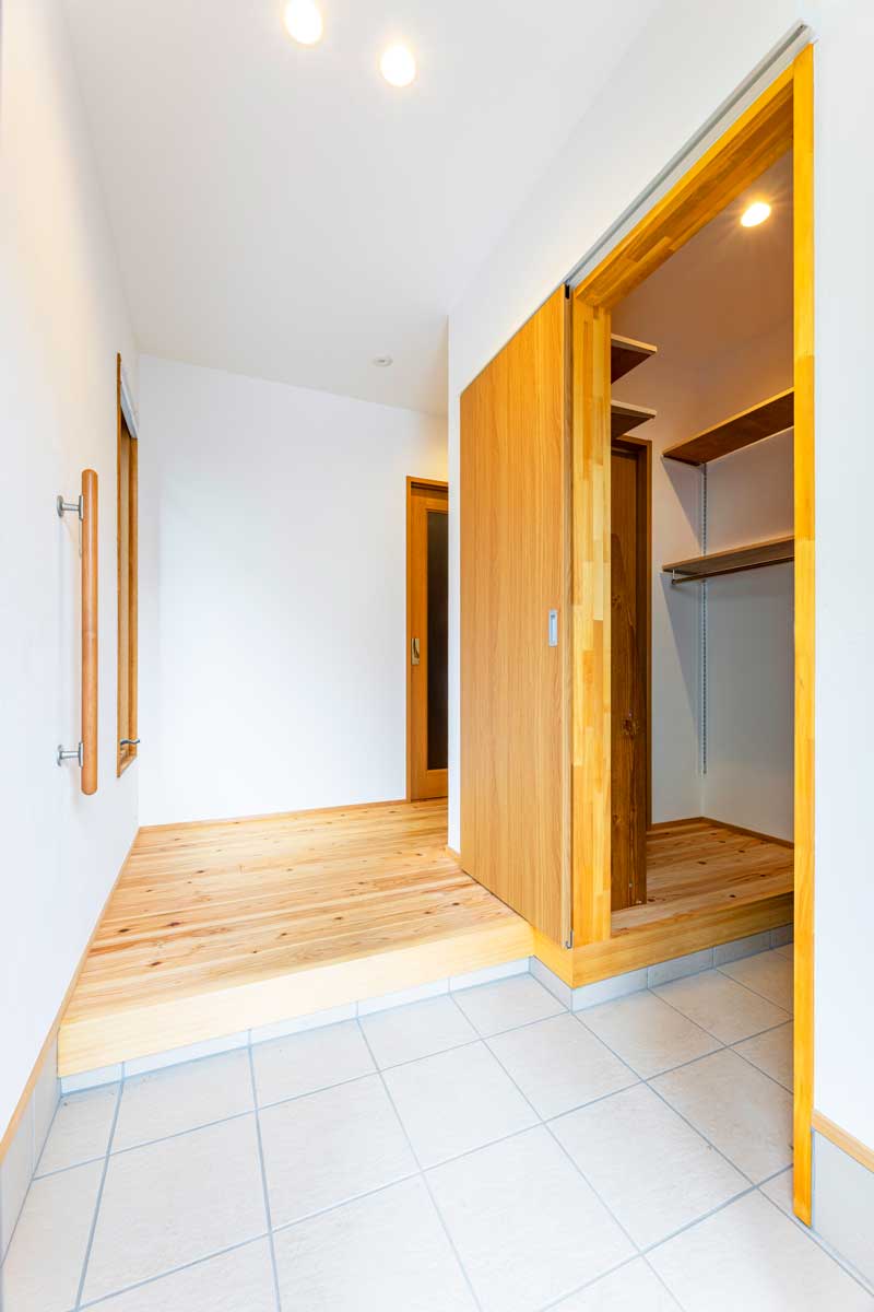 室内側に断熱材を貼って断熱性能を向上させた壁は、内窓の枠と面が揃って見た目もすっきり。天井も壁も調湿効果のある珪藻土で仕上げ、床は杉の無垢材を重ね張りし、既存の建具の下を15㎜カットして再利用。自然素材の心地良さに包まれる家になりました。