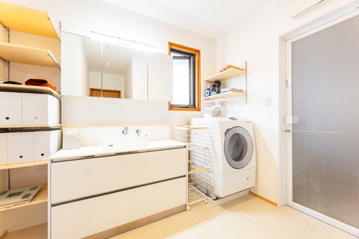 - D:DKと洗面室の間には腰壁から階段を見下ろせるホールがあり、扉を2枚開ける煩わしさと冬の寒さへの懸念がありました。